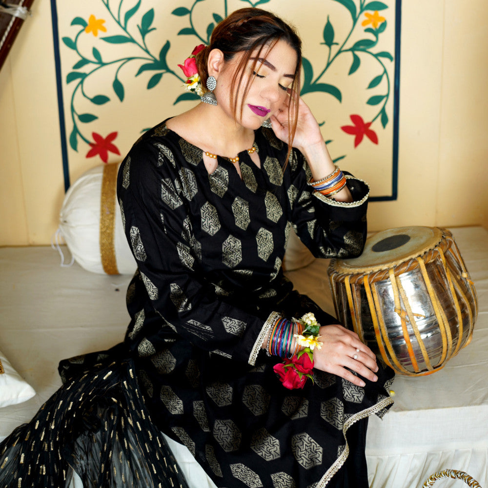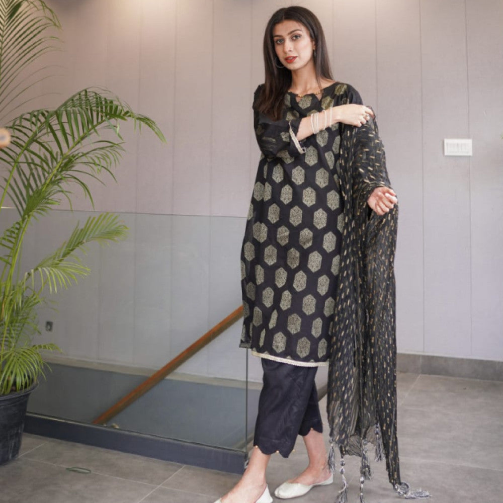 3 PC Traditional Dress in Beautiful Black N Dull Gold.
