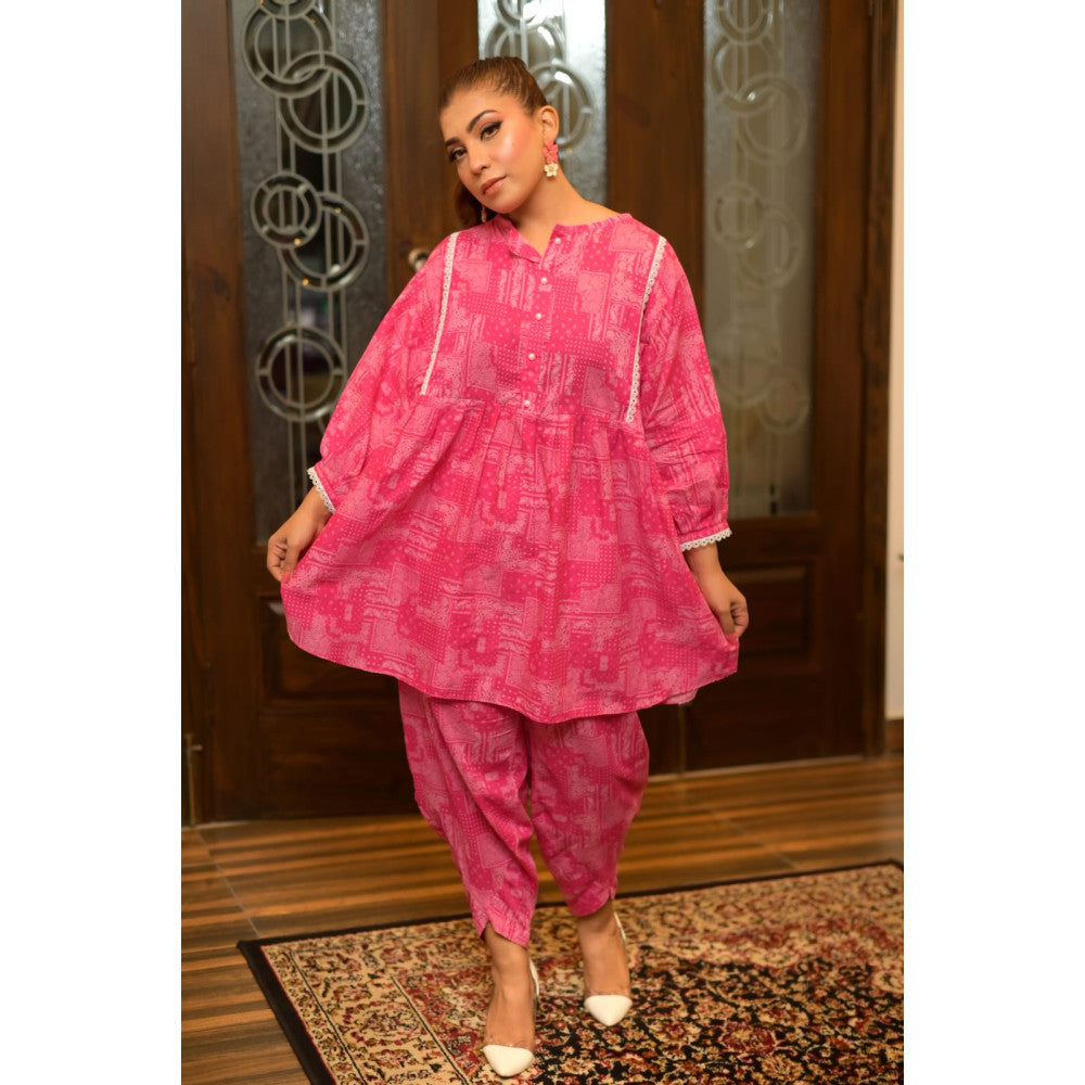 This pleasant ensemble comprises a stitched tulip trouser and a baggy frock, both made from high-quality lawn fabric.